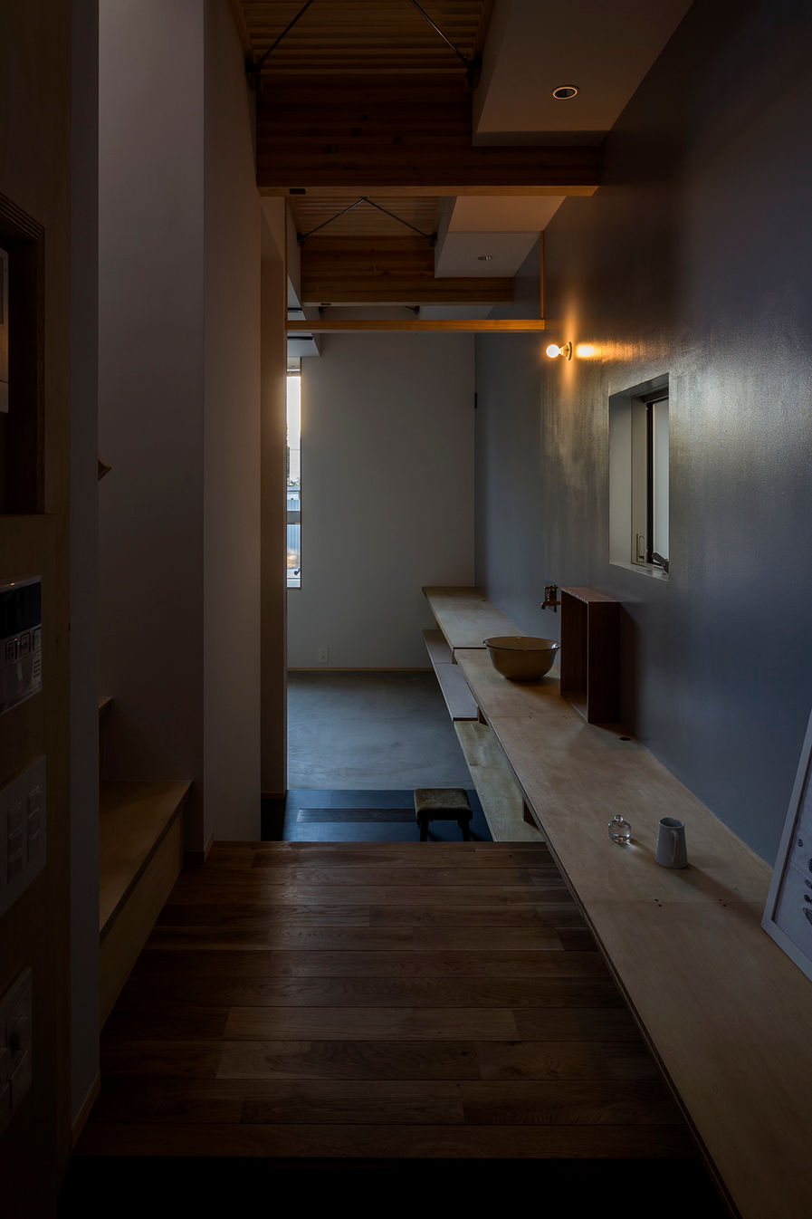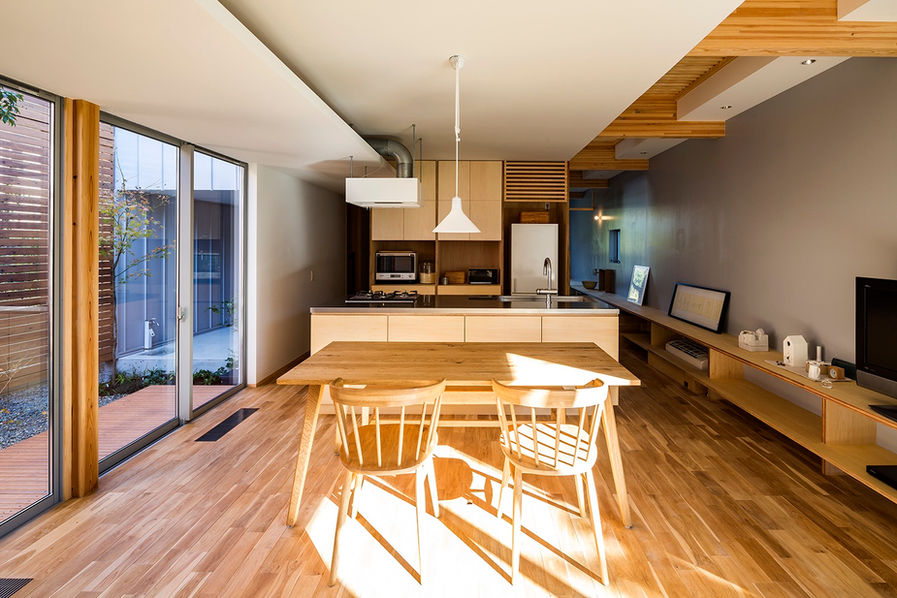 土地や周辺環境的にはあまり恵まれているとは言い難いかもしれない環境の中、北と南がが反転したような非一般解としての住宅プランなのですが、出来上がってしまうと不思議と普通にこのかたちで存在していたかのような、そんな少しだけゆっくり時間が流れるおうちとなっていることを願っています。