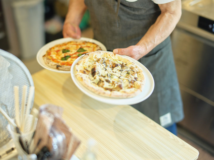 素材にもこだわり、ナポリ産モッツァレラや北海道産小麦を使った本格ナポリピッツァ、長野県産すずらん牛乳100%のソフトクリームを提供。