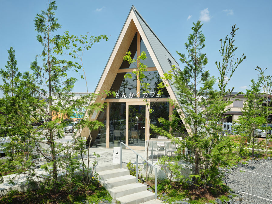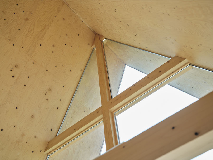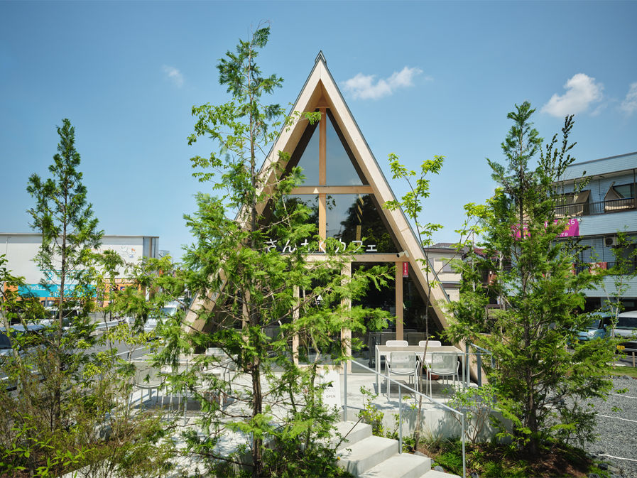 さんかくの外観のフレームとなっている面は、外壁か屋根かわからない曖昧な形状で、この建物自体が明確でないことを提示し、働く人や利用する人の境界が自然に曖昧であって欲しいという願いを込めてデザインしました。