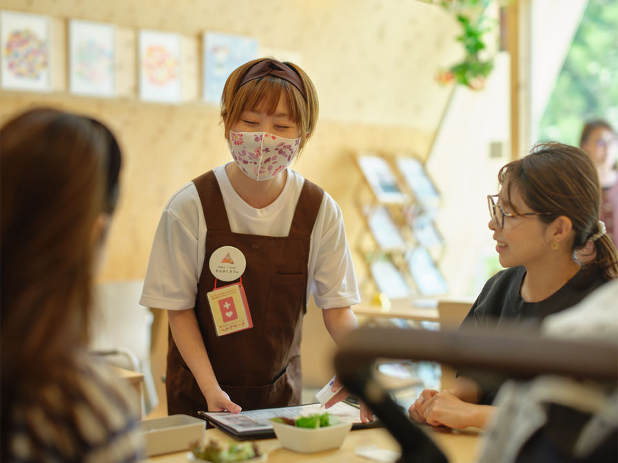 建物はバリアフリー設計で、スロープや広いトイレ、テラス席を整備。車いすやベビーカー、ペット連れの方まで誰もが安心して利用できる環境です。